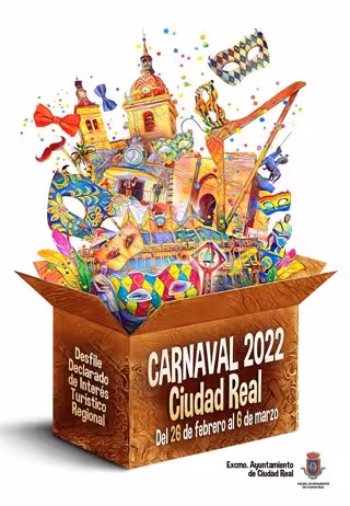 La alcaldesa de Ciudad Real, Eva María Masías, explicaba que el cartel recoge todos los emblemas y estandartes de la ciudad saliendo de una caja, "ya que llevamos dos años con la pandemia, y se abre una explosión de color para que la ciudad viva el Carnaval".