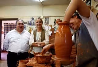 Durante la visita al taller de los Hermanos Peño, que llevan cinco generaciones trabajando el barro y la arcilla, Casero ha conocido uno de los alfares que unen las técnicas de antaño, encarnadas en Gregorio, Adrián y Ángel Peño y las creaciones de uno de los grandes exponentes del arte actual en nuestra región, Gregorio Peño jr, que está iniciando su posicionamiento en mercados internacionales hasta el punto de haber sido merecedor de varios premios de contrastado prestigio.