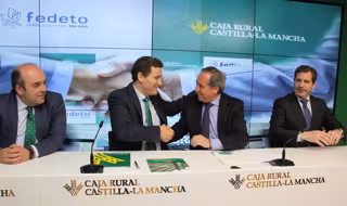 El convenio ha sido firmado este martes por el director general de la entidad, Víctor Manuel Martín y por el presidente de Fedeto, Ángel Nicolás. Además, han estado acompañados por el director de Negocio de Caja Rural Castilla-La Mancha, Enrique Muñoz y el secretario general de Fedeto, Manuel Madruga.