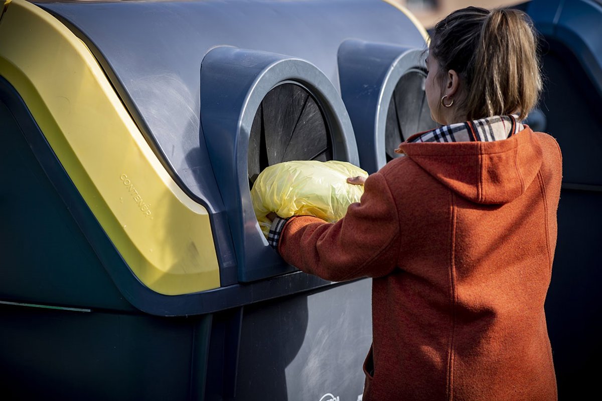 Una ciudadana deposita residuos en un contenedor - ECOEMBES - Archivo
