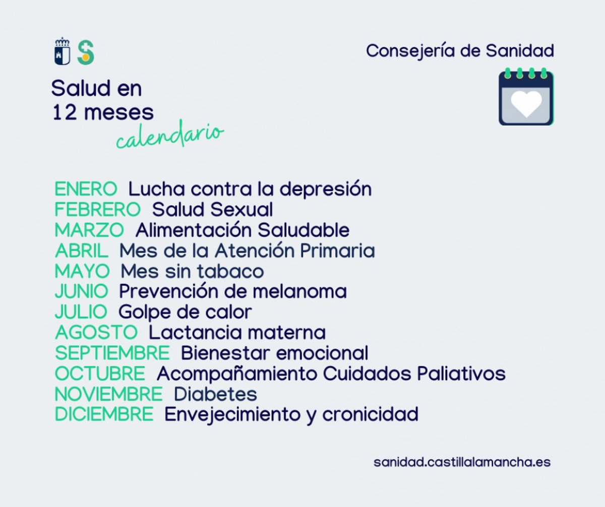 El Gobierno de Castilla-La Mancha, a través de la Consejería de Sanidad, ha puesto en marcha este mes de febrero el proyecto 'Salud en 12 meses', una nueva iniciativa para la prevención y promoción de la salud, que se enmarca dentro del programa 'CLM con + vida'.