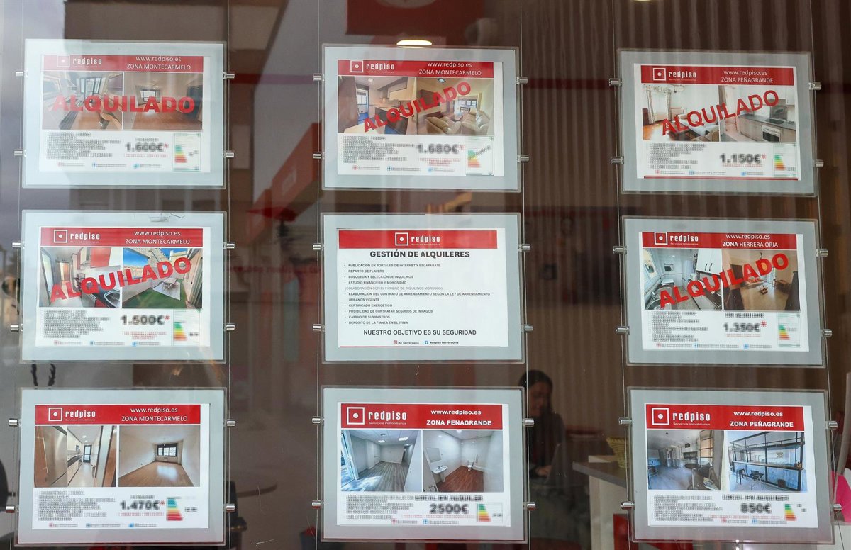 Anuncios en una inmobiliaria, a 17 de octubre de 2024, en Madrid (España). El pasado 15 de octubre, el Consejo de Ministros aprobó la nueva convocatoria del Bono Alquiler Joven de 2024, que repartirá 200 millones de euros entre las comunidades autónomas p - Marta Fernández - Europa Press