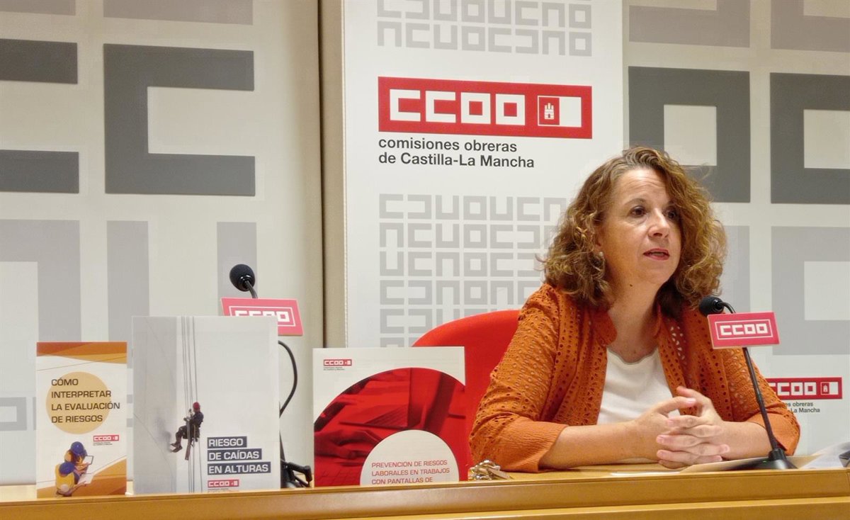 La secretaria de Diálogo Social, Institucional y Salud Laboral de CCOO CLM, Raquel Payo, en rueda de prensa. - CCOO