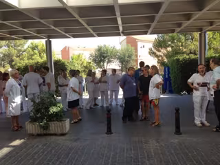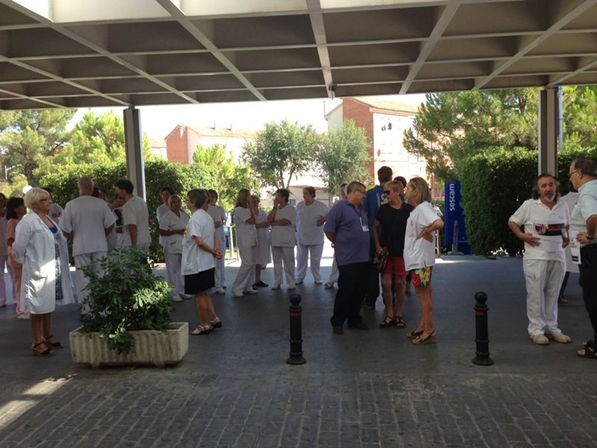 Jiménez ha hecho estas declaraciones durante la concentración que ha tenido lugar en el Hospital del Perpetuo Socorro de Albacete, una de las que han vuelto a protagonizar hoy "numerosos" trabajadores del SESCAM ante sus respectivos centros de trabajo para reclamar la paralización de los ceses de 154 celadores y administrativos prevista para este mismo viernes.