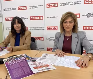 La secretaria de Mujeres y Políticas LGTBI de CCOO Castilla-La Mancha, Rosario Martínez, y la secretaria general de CCOO Albacete, Carmen Juste, han sido las encargada de exponer, en una rueda de prensa, el conjunto de actos que tendrán lugar en las capitales de Castilla La Mancha para contribuir a la labor de sensibilización y visibilización sobre las diferentes manifestaciones de violencia que sufren las mujeres, según ha informado la propia central sindical por nota de prensa.