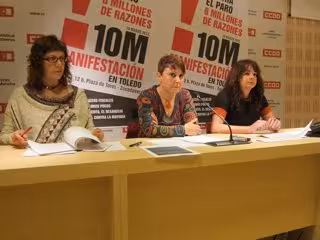 Así lo ha puesto de manifiesto la secretaria regional de Mujer de CCOO, Lola Castejón, la secretaria regional de Empleo del sindicato, Lola Santillana, y la responsable de Mujer de CCOO de Toledo, Maribel Arias, en la rueda de prensa en la que han presentado los actos que ha organizado para este viernes en toda la región con motivo del Día de la Mujer.
