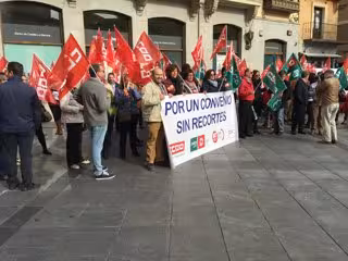 Un centenar de delegados sindicales del sector Ahorro de Castilla-La Mancha se han concentrado este viernes en Toledo para "defender" su convenio colectivo y pedir "que se avance en su negociación, atascada por la pretensión de la patronal de recortar salarios y derechos".
