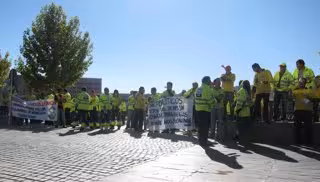 Cerca de un centenar de trabajadores de la empresa Transaltozano han secundado una 'cacelorada' ante la sede del Servicio Público de Salud de Castilla-La Mancha (SESCAM) en Toledo para reclamar "el pago de las nóminas que la Administración regional se comprometió a pagar antes de que finalizara el mes de noviembre".