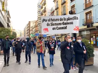 La manifestación en Cuenca contra la deslocalización de las plantas eólicas de Somozas (A Coruña) y Cuenca por parte de la multinacional Siemens-Gamesa ha congregado a centenares de personas este viernes con el objetivo de "agotar todas las vías" y hacer recapacitar a la empresa, para evitar el despido de 266 operarios, de los cuales 215 pertenecen a la planta de Ferrolterra y los 51 restantes a las instalaciones de Castilla-La Mancha.