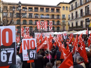 Alrededor de 400 personas se han manifestado en Toledo contra los recortes sociales y la ampliación de la edad de jubilación a los 67 años propuesta por el Gobierno, una medida por la que CCOO y UGT de Castilla-La Mancha prevén un año 2011 de "alta conflictividad social" y no descartan una nueva huelga general "en los primeros días de enero".