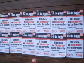 La cita se ha desarrollado sin incidentes, en un ambiente distendido y sin proclamas. Tras la pancarta 'El Estado de Bienestar es tu derecho. Defiende lo público' los sindicatos convocantes han denunciado que "lejos" de impulsar políticas de regeneración los Ejecutivos central y regional "imponen ajustes injustos que no garantizan lo público, ni el empleo".
