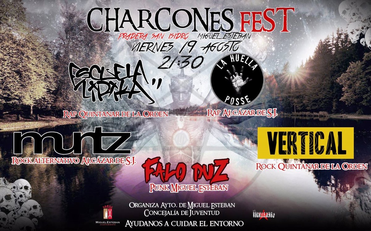 Rock, punk y rap serán los principales estilos que se darán cita en 'Charcones Fest', el nuevo festival que se celebrará en Miguel Esteban (Toledo) y que contará con seis horas de música en directo. Organizado por el Ayuntamiento miguelete, a través de su Concejalía de Juventud, se celebrará el viernes 19 de agosto en la Pradera de San Isidro.