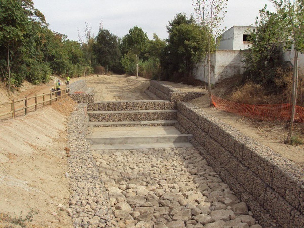 En concreto las obras y trabajos realizados han consistido en la construcción de 100 metros lineales de muros laterales de mampostería gavionada, y un dique transversal de mampostería gavionada de 12 metros de anchura y 5 de altura con rastrillo y contradique para lo que ha sido necesaria la construcción de 440 metros cúbicos de mampostería gavionada.