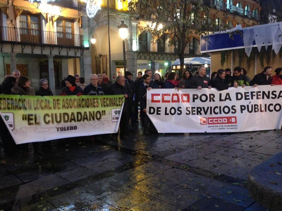 En Toledo, el secretario provincial de CCOO, Jesús García Villaraco, ha pedido los sindicalistas y vecinos concentrados ante la Delegación del Gobierno "hacernos fuertes en los ayuntamientos, con los trabajadores y los ciudadanos, defendiendo una a una las competencias que los quieren quitar; defendiendo la democracia real y cercana que significa la autonomía municipal"