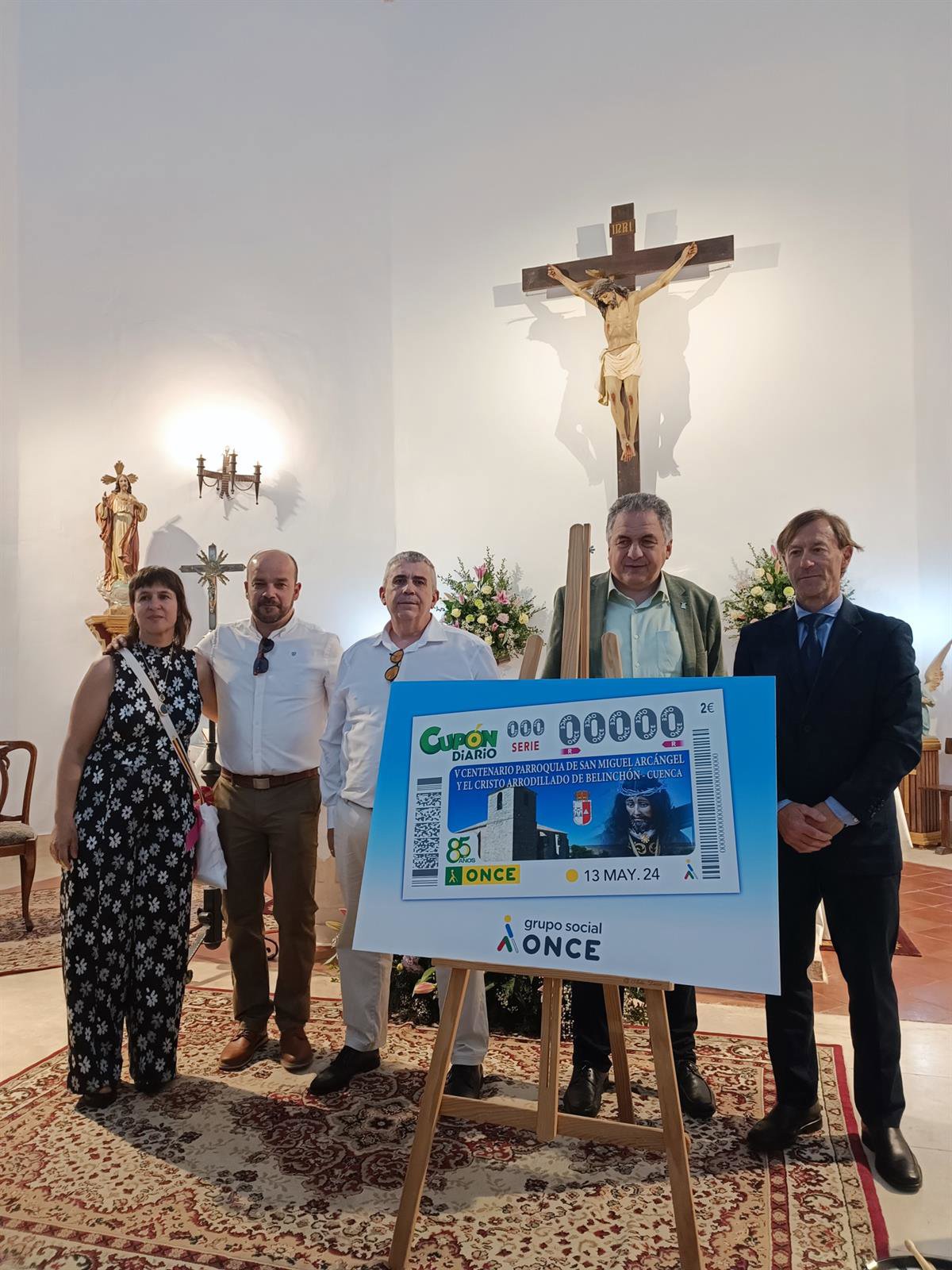 Presentación del cupón de la ONCE dedicado al V Centenario de la Parroquia de San Miguel Arcángel y el Cristo Arrodillado de Belinchón. - ONCE