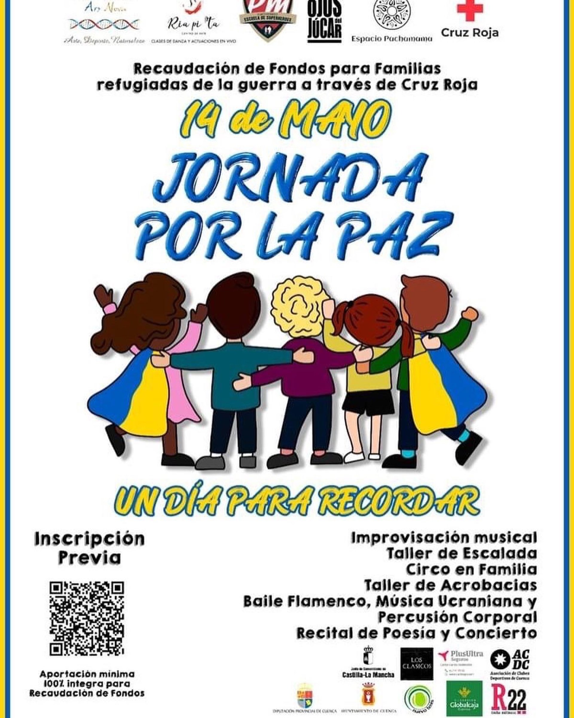 La ciudad de Cuenca acogerá este fin de semana la 'Jornada por la paz', una iniciativa que contará con talleres de escalada y acrobacias, un circo familiar, baile flamenco, música ucraniana y otras actividades para recaudar fondos que serán destinados a familias refugiadas de la guerra de Ucrania, de la mano de Cruz Roja.