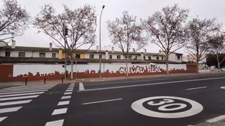 Es lo primero que ven viajeros y visitantes cuando llegan en tren a Ciudad Real y se salen por la puerta de la estación ferroviaria, un gran mural que han realizado durante las últimas dos semanas cuatro artistas de la Asociación Cultural La Fábrika con la colaboración de la concejalía de Servicios a la Ciudad del Ayuntamiento. Un grafiti artístico que representa de forma muy precisa el 'skyline' de la capital provincial.