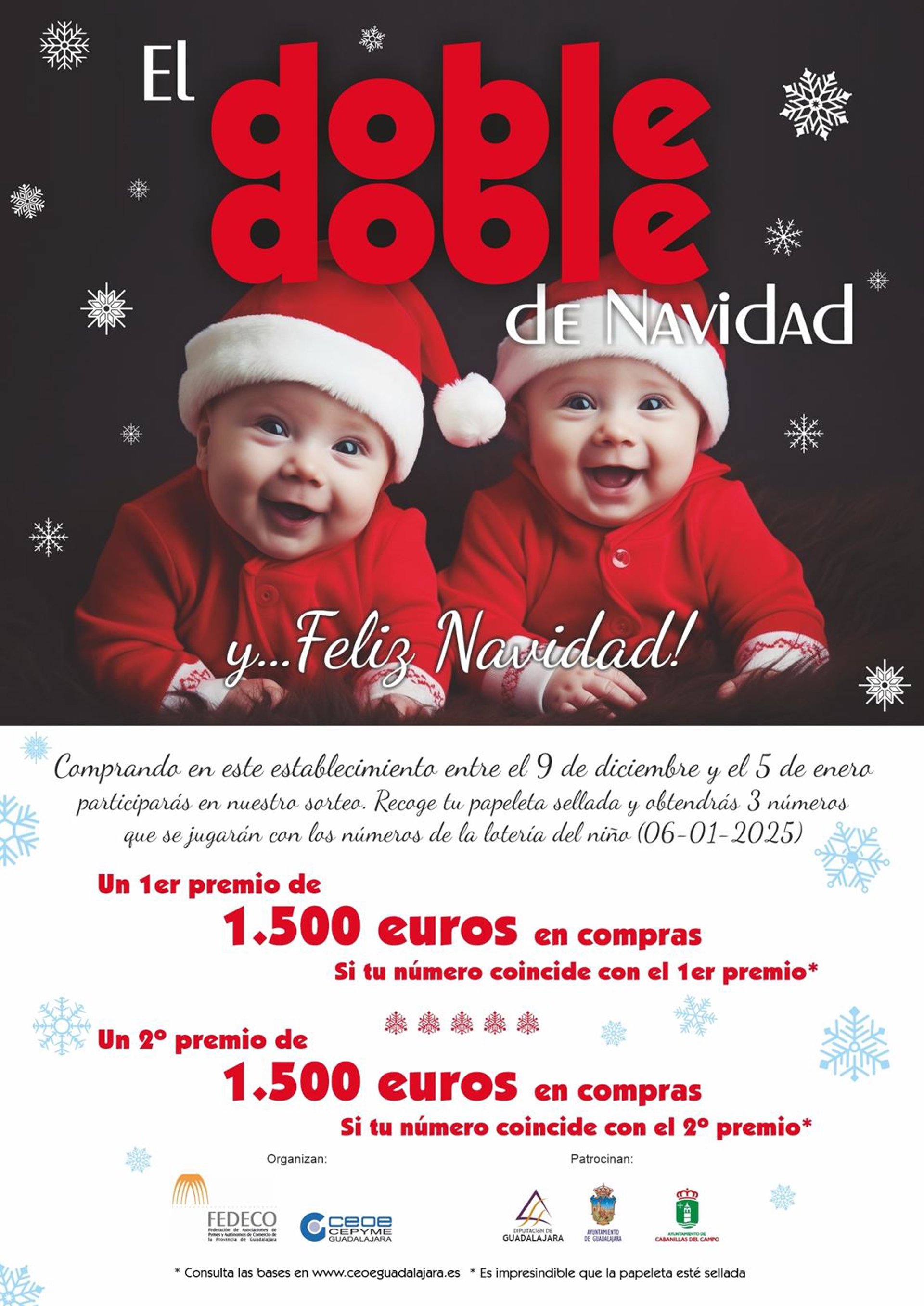 La Federación de Asociaciones de PYMES y Autónomos de Comercio de la Provincia de Guadalajara (FEDECO), integrada en CEOE-CEPYME Guadalajara, ha presentado una nueva edición de su campaña 'El Doble, doble de Navidad', que dará comienzo el próximo 9 de diciembre y estará en vigor para las compras realizadas en los comercios adheridos a la campaña en los 15 municipios participantes, hasta el 5 de enero de 2025.