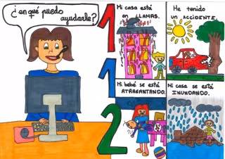 La autora del trabajo elegido como ganador de esta edición del concurso ha sido Ángela García Saiz, alumna de 6º curso de Educación Primaria del citado colegio conquense, en cuyo dibujo ha plasmado a una operadora del 112, así como cuatro situaciones de emergencia que pueden ser atendidas por el Servicio, según ha informado la Junta mediante nota de prensa. El lema que acompaña al dibujo ganador, '¿En qué puedo ayudarle?', es parte del saludo protocolario que se utiliza por parte de los operadores del Servicio de Emergencias, lo que remarca el trabajo central que realiza la Sala de Coordinación en este tipo de actuaciones.