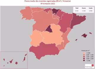 Precio medio de las viviendas registradas en el cuarto trimestre de 2022 - COLEGIO DE REGISTRADORES