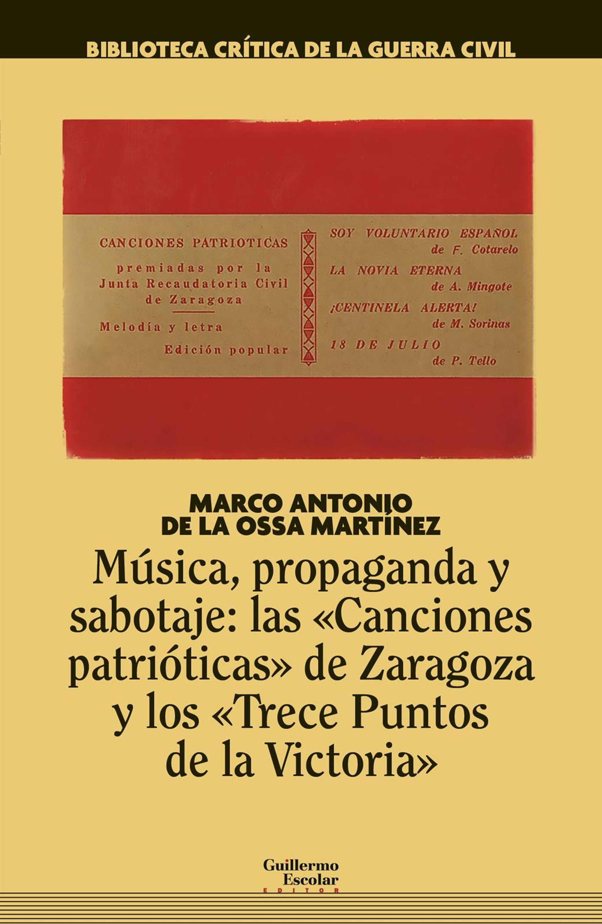 Las 'Canciones patrióticas' de Zaragoza y los 'Trece Puntos de la Victoria'" es el título del último libro de Marco Antonio de la Ossa. - MARCOS DE LA OSSA