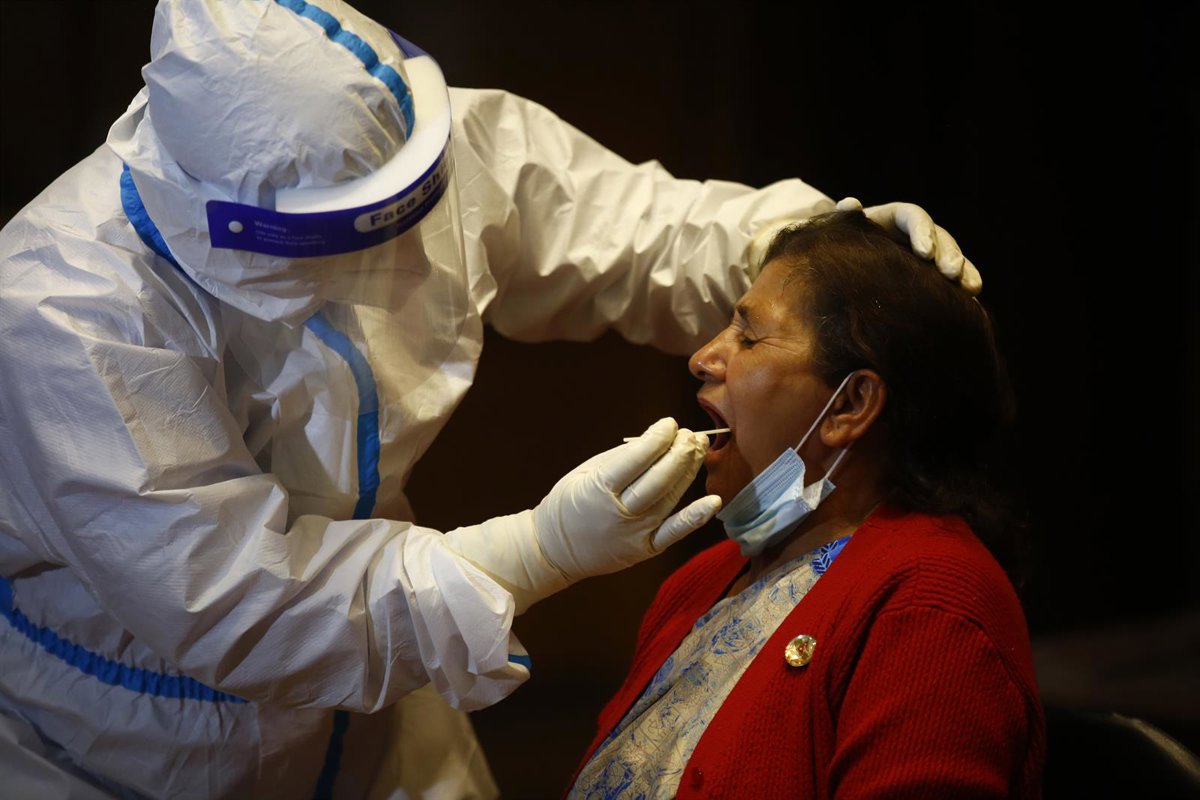 07 May 2020, Nepal, Kathmandu: A health worker takes a throat swab sample for the coronavirus PCR test from a woman, as the government is testing the members of National Assembly and House of Representatives for the novel coronavirus a day before the ne - Skanda Gautam/ZUMA Wire/dpa - Archivo