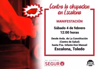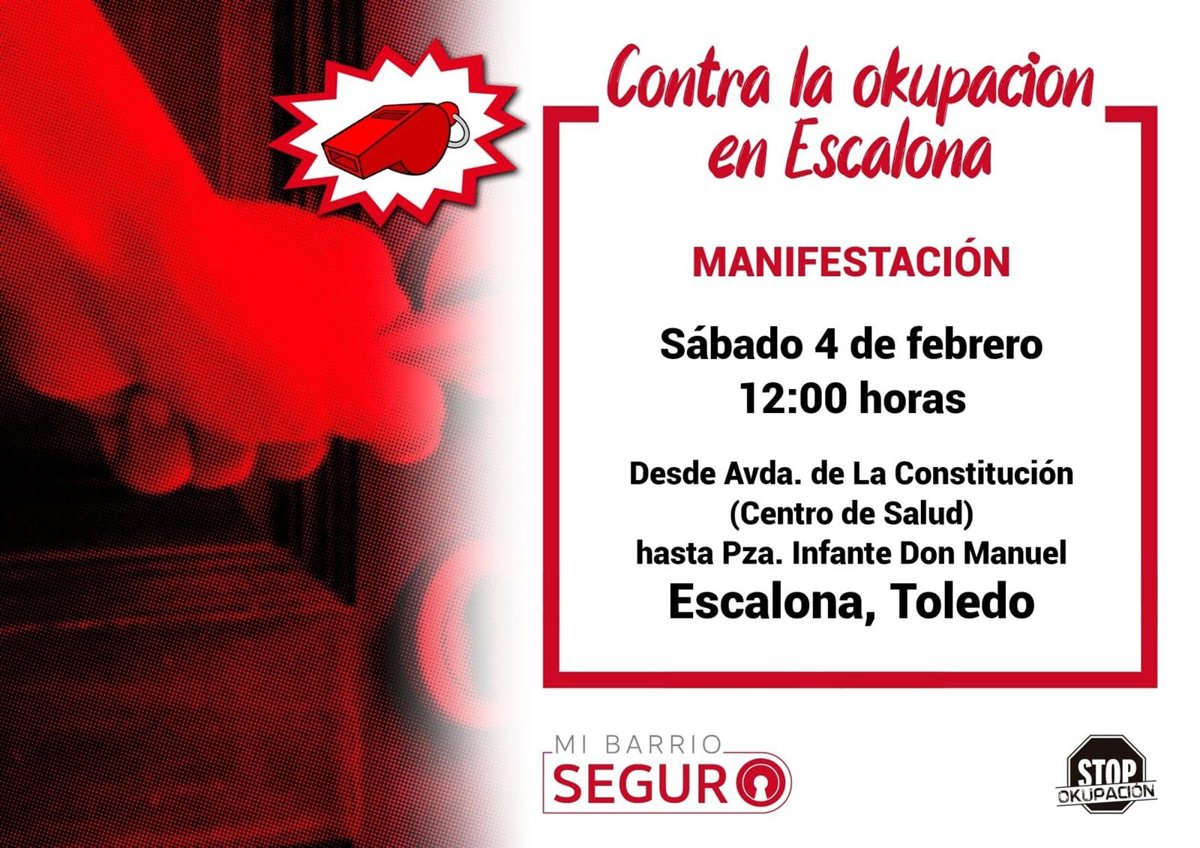 La asociación 'Mi Barrio Seguro' ha organizado para el sábado 4 de febrero a las 12.00 horas una manifestación contra la ocupación de viviendas en el municipio toledano de Escalona, "el paraíso de la okupación VIP".