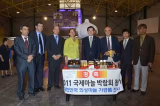 El alcalde de Uiseong se ha interesado por la maquinaria exhibida en la FIDA, también por el sistema de trabajo en cooperativa, un tipo de organización empresarial distinto al de Corea donde, según ha comentado Kim Bok Kyu, los productores suelen ser independientes. Uiseong es una ciudad de unos 60.000 habitantes, situada en la mitad de la península de Corea, que produce ajo y productos elaborados a partir de este condimento.
