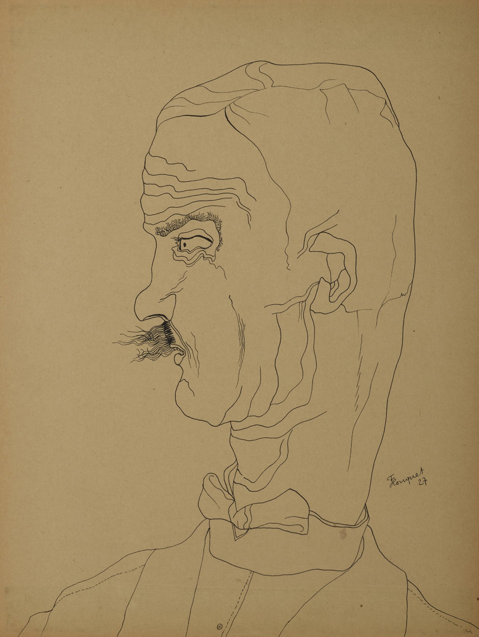Entre 1927 y 1931, el franco belga Flouquet realizó gran cantidad de dibujos en tinta china, de un virtuosismo sorprendente, que representan rostros fantasmagóricos de aire alucinatorio, casi de pesadilla, ajenos a toda inspiración naturalista y a medio camino entre la densidad expresionista y el estudio psicológico.
