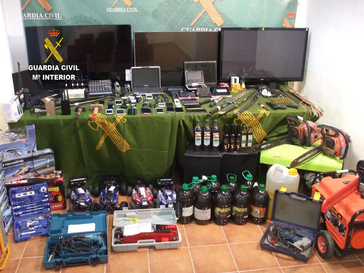 También se han intervenido diez garrafas de cinco litros de aceite de oliva, 40 botellas de 250 centilitros de aceite de oliva, tres garrafas de 25 litros de aceite de girasol, 23 chaquetones de abrigo, 20 bolsos de mujer, 40 ambientadores eléctricos, gran cantidad de productos de cosmética y limpieza, 2.000 Prendas de vestir de diversas marcas, 3.000 pares de botas de caña alta marca y 770 prendas de vestir marca Zara procedentes de diferentes robos.