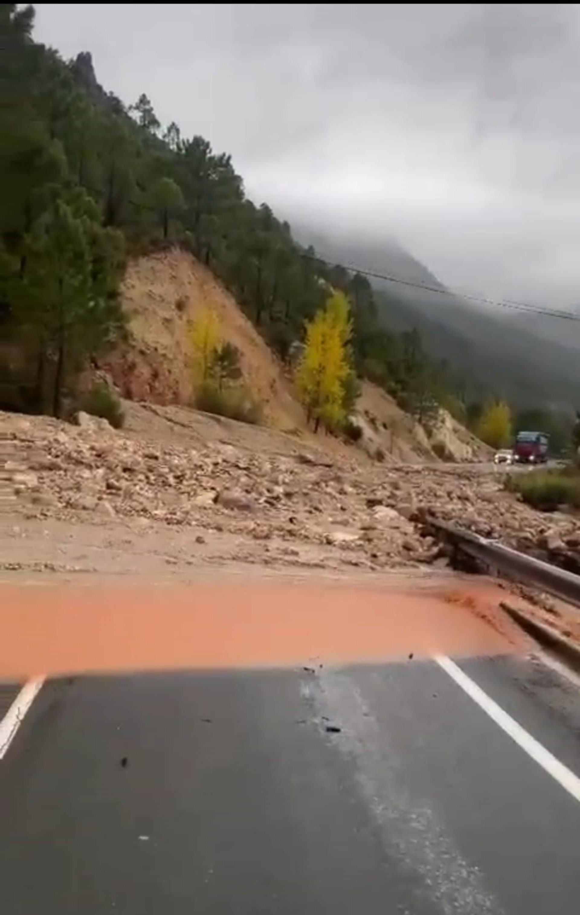 La CM-412 a su paso por Molinicos (Albacete) está totalmente cortada, a la altura de su kilómetro 208, debido a un deslizamiento de tierra.