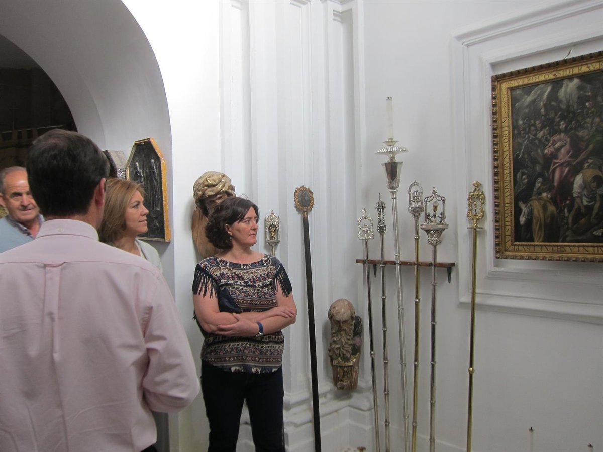 La candidata del PP a la Presidencia de Castilla-La Mancha, María Dolores de Cospedal, ha admirado, junto a vecinos y corporación municipal, el Expolio del Greco que alberga la Iglesia de Santo Tomás Apostol del municipio toledano de Orgaz.