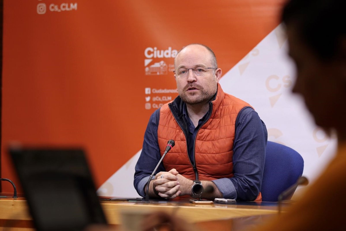 El diputado de Cs en las Cortes de C-LM, Alejandro Ruiz, en rueda de prensa. - CS