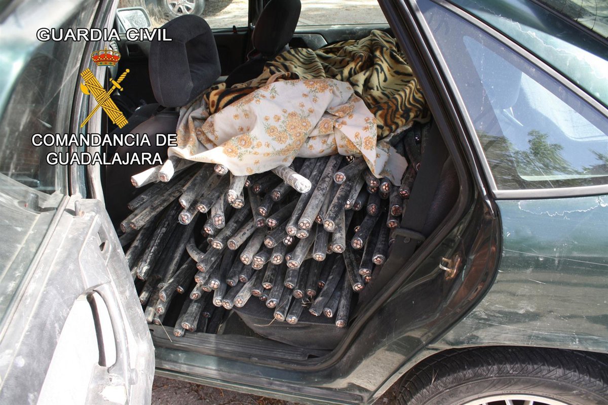 Una patrulla del Puesto de la Guardia Civil de Torija logró interceptarlo a la altura del kilómetro 69 de la Autovía A-2, en el término municipal de esa localidad. Este vehículo iba ocupado por otras dos personas, mayores de edad que transportaban numerosas barras de cobre en su maletero.