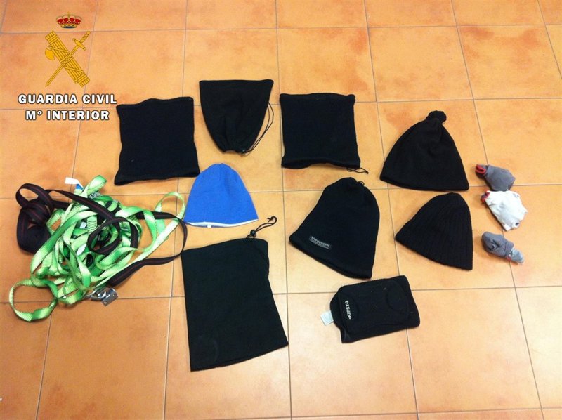Tras identificar a los ocupantes del vehículo, cuatro hombres que vestían ropas oscuras, se realizó un registro superficial del mismo, hallándose entre otras prendas cuatro pasamontañas y diversas herramientas.