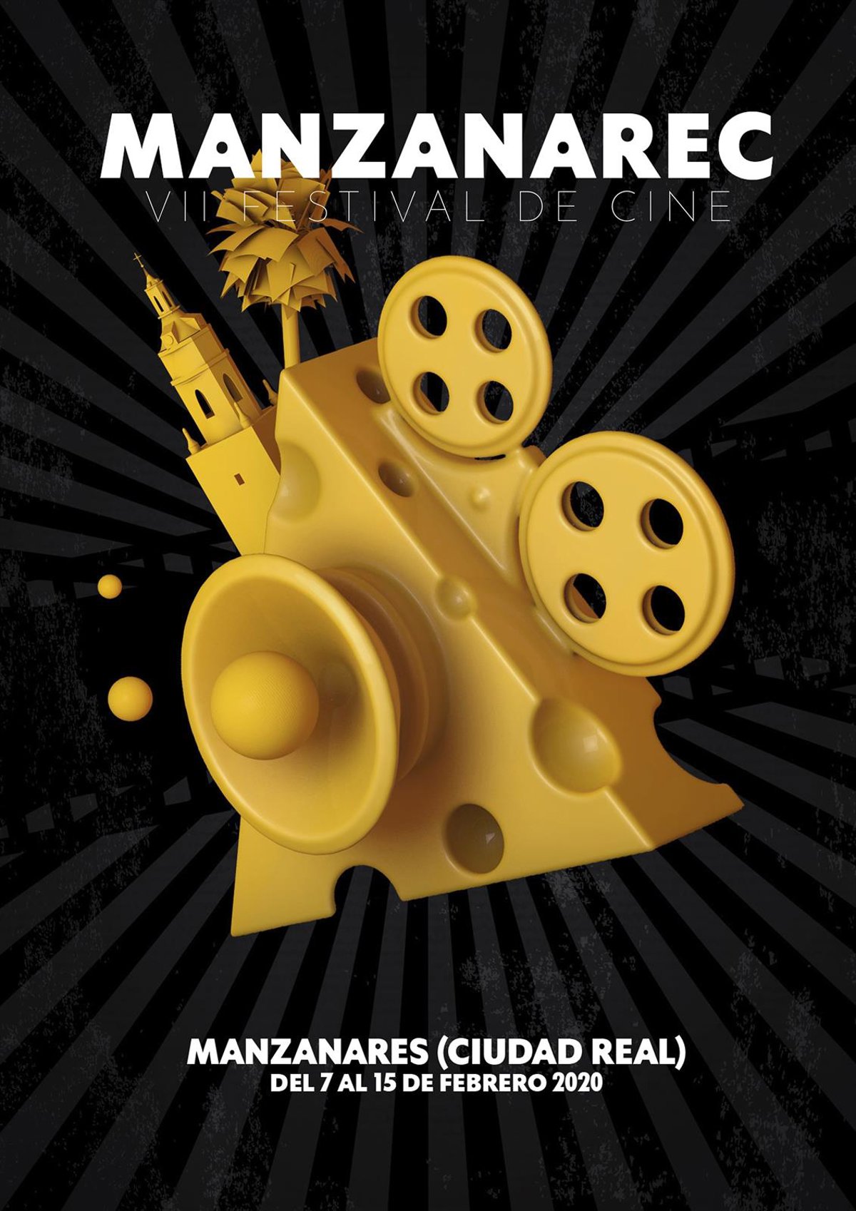 El VII ManzanaREC ya tiene su imagen oficial. La obra de por Roger Arturo Martínez ha sido la elegida entre el centenar de propuestas y se trata de una cuña de queso que se convierte en un proyector incorporando dos cintas de cine, un altavoz y la icónica imagen de la parroquia de la Asunción de Manzanares.