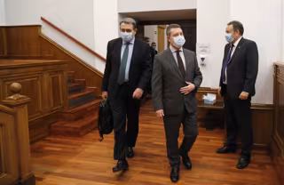 El consejero de Sanidad, Jesús Fernández, y el presidente de C-LM, Emiliano García-Page, entrando al pleno de las Cortes. - CORTES