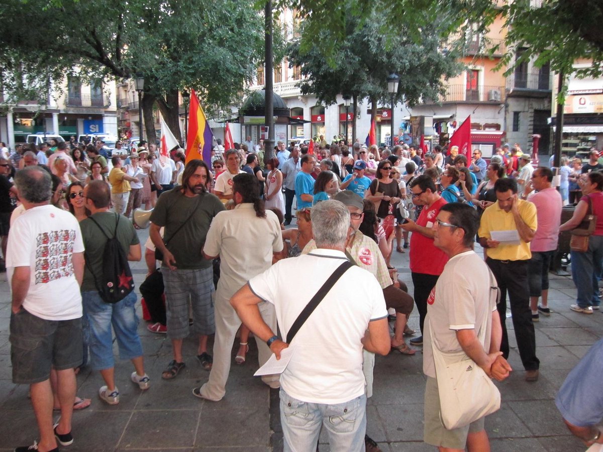 Decenas de personas --unos 150 según los organizadores, unos 60 según la Delegación del Gobierno-- se han concentrado este miércoles en la plaza de Zocodover de Toledo, convocadas por IU, contra el "fraude electoral" del PP en Castilla-La Mancha, al estar haciendo "un programa totalmente contrario al que dijo".