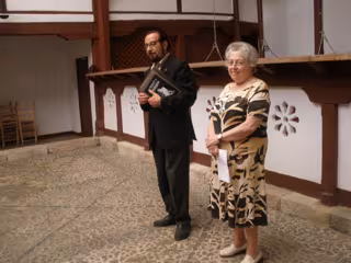 Después de la lectura el mensaje del aniversario de la recuperación del Corral a cargo del dramaturgo uruguayo Luis Masco, la compañía teatral 'La Piel del Oso' ha leído un fragmento del auto sacramental 'La Hidalga del Valle', de Calderón de la Barca, obra que fue representada el 29 de mayo de 1954 en la reapertura del Corral.