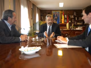 El delegado del Gobierno en Castilla-La Mancha, Máximo Díaz-Cano, se ha reunido en la Delegación del Gobierno con el presidente de la Confederación de Empresarios de Castilla-La Mancha (CECAM), Ángel Nicolás y el secretario general de dicha organización, Félix Peinado, para conocer sus inquietudes ante la convocatoria de huelga general del próximo miércoles.