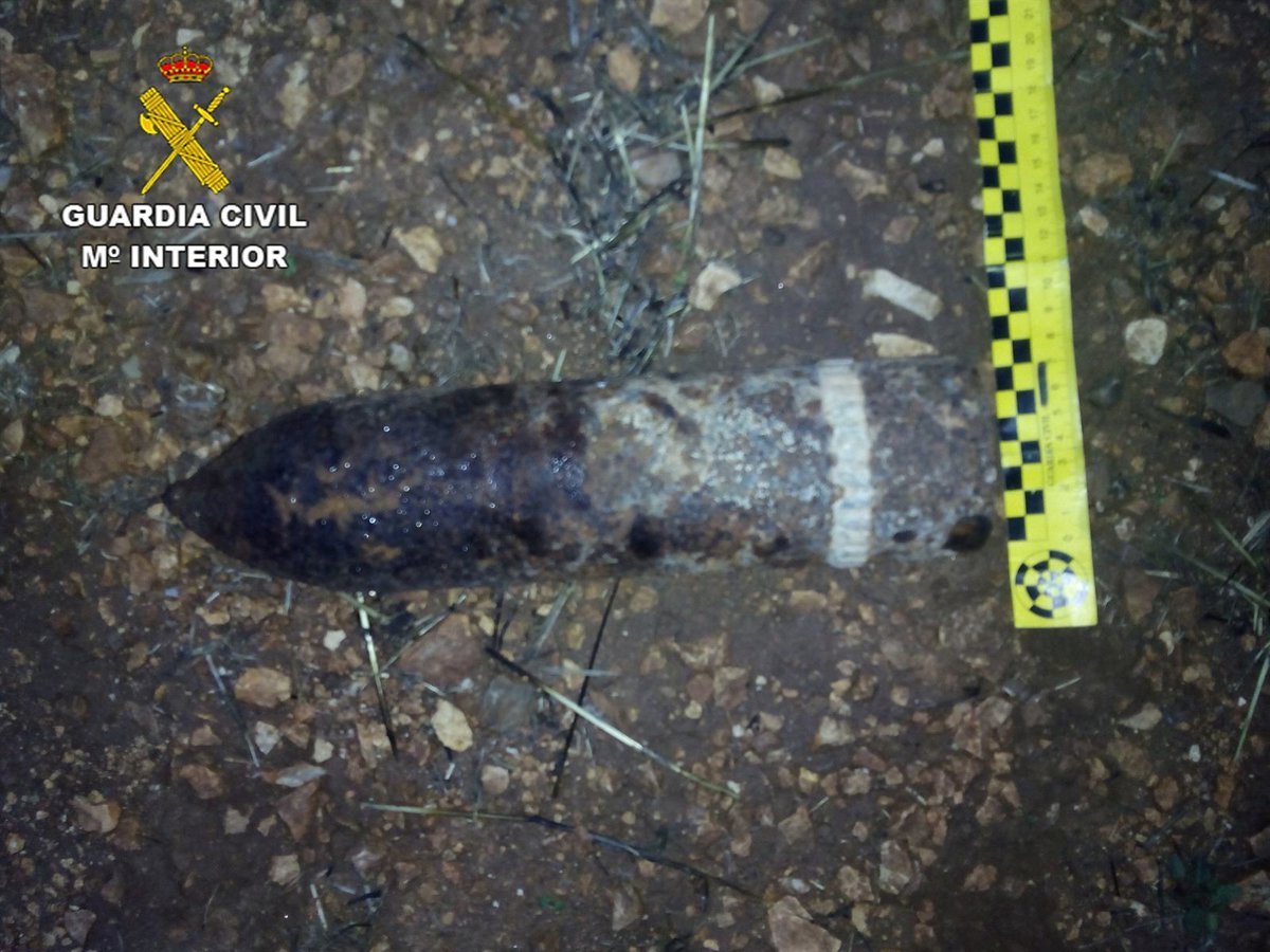 La Guardia Civil ha desactivado un proyectil de artillería utilizado en la Guerra Civil, que había sido localizado por un agricultor cuando se encontraba arando en una finca del 'Paraje de la Vega', en el término municipal de Ledanca (Guadalajara).