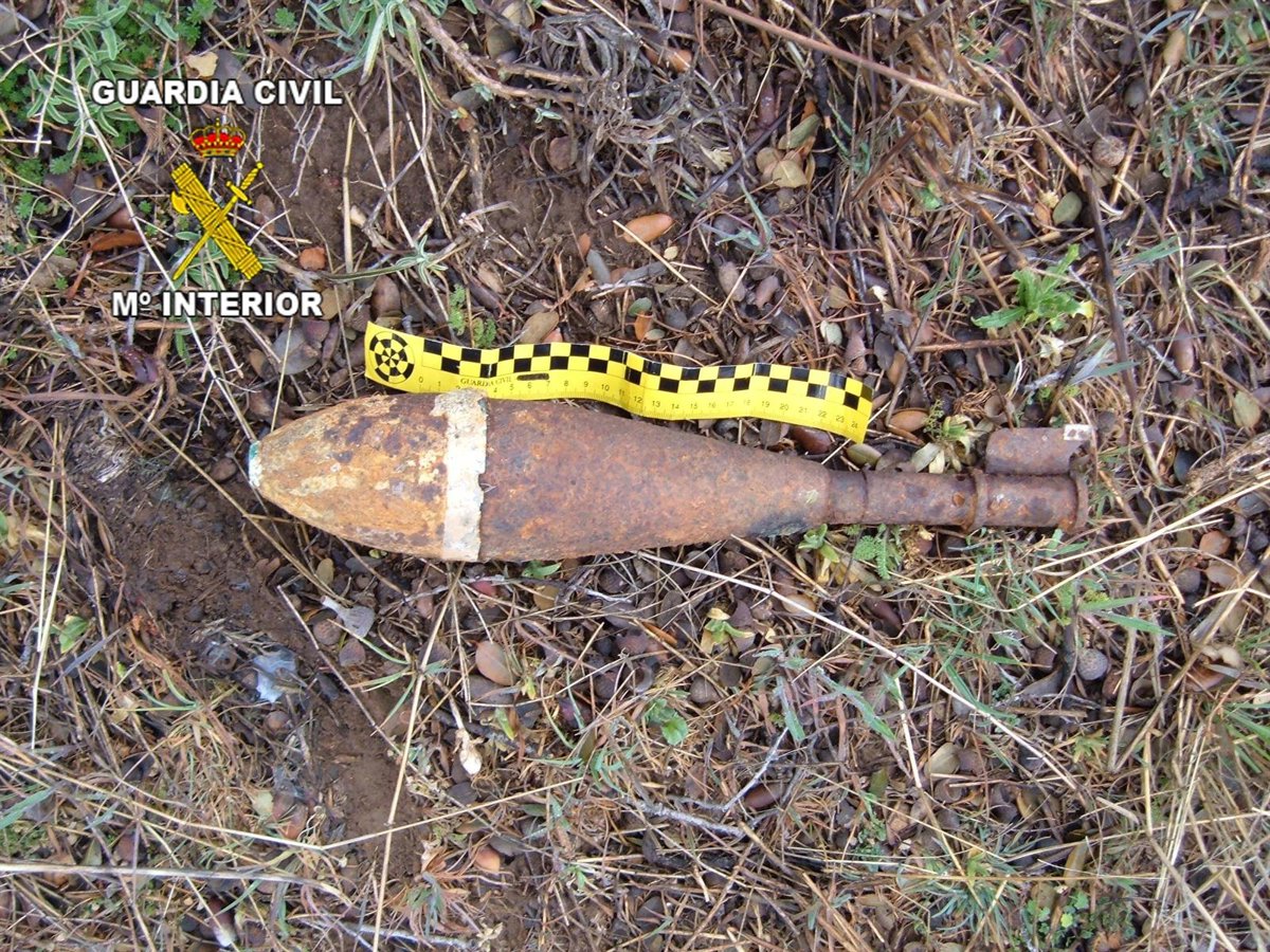 La Guardia Civil desactivó el pasado 4 de abril un artefacto explosivo --el cuerpo principal de una granada de mortero de 90 milímetros originaria de la Guerra Civil española-- que fue localizado por un vecino mientras realizaba labores de labranza en un terreno de su propiedad en el paraje conocido como 'Los Hoyos', en término municipal de Renales (Guadalajara).