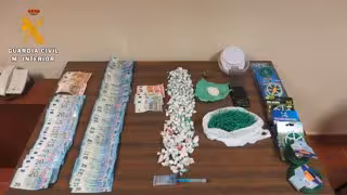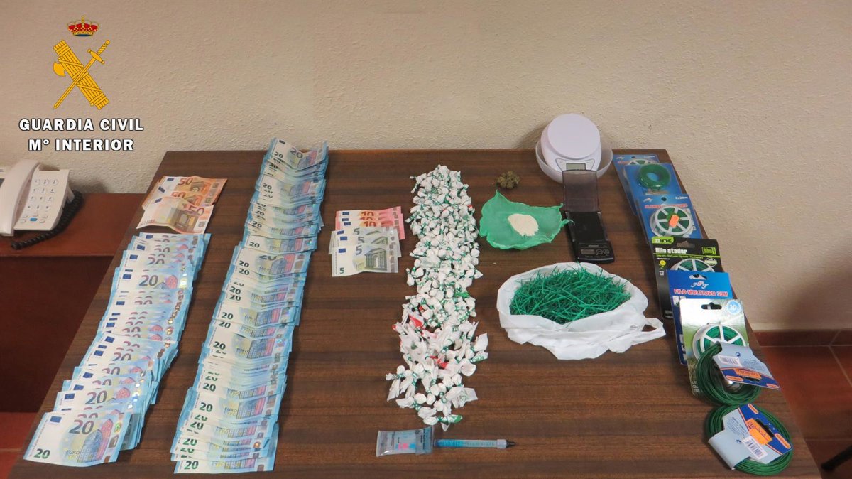 Una vez analizada toda la información obtenida durante la investigación, la Guardia Civil solicitó a la Autoridad Judicial una autorización de entrada y registro para esta propiedad, donde los agentes hallaron, en distintas estancias de la vivienda, 257 dosis de cocaína de medio gramo cada una dispuestas para su venta, 10,6 gramos de esta misma sustancia sin cortar, dos básculas de precisión, material para su envasado y corte, documentación relativa al delito investigado y 3.975 euros en metálico.