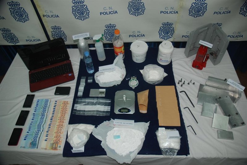 La fase final de esta operación tuvo lugar la semana pasada, culminándose con un registro domiciliario en la vivienda del máximo responsable, interviniéndose 1.234 gramos de cocaína y 2.500 gramos de precursores, desmantelándose asimismo un laboratorio clandestino en el que, con la ayuda de una prensa hidráulica, se manipulaba y adulteraba la sustancia estupefaciente con el fin de obtener una mayor cantidad y maximizar el beneficio final.