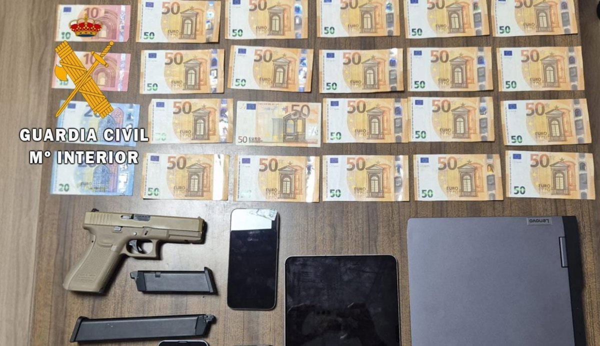 Durante la actuación se intervinieron 1.159 euros bloqueados en cuenta, dinero en efectivo, documentación bancaria, tarjetas SIM, un DNI español y un NIE portugués falsificados, así como una pistola detonadora, efectos que quedaron a disposición judicial. A los implicados se les atribuyeron delitos de estafa, blanqueo de capitales, usurpación de estado civil, falsificación de documento público y pertenencia a grupo criminal.
