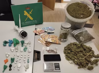 Como consecuencia del registro efectuado en el inmueble investigado por la Guardia Civil, se intervinieron 51 gramos de cocaína, dosificada y lista para su venta; 133 gramos de cogollos de marihuana; 1.542 gramos de picadura de marihuana; 740 euros en metálico, en billetes de diverso valor y una báscula de precisión, utilizada para el pesaje del estupefaciente.