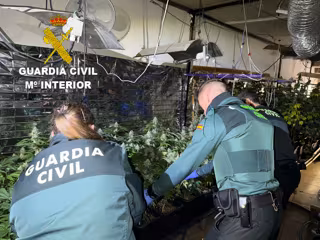 La Guardia Civil de Cuenca ha desmantelado una plantación de marihuana indoor de 450 plantas en la localidad de Víllora. En la actuación se ha detenido a un varón de 58 años de edad como supuesto autor de un delito contra la salud pública y otro de defraudación de fluido eléctrico.