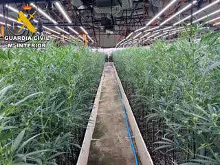 En el interior del recinto se han localizado dos plantaciones de marihuana tipo indoor, una de 2.962 plantas que se encontró en la vivienda y otra en la nave agrícola con 3.242, todas ellas en avanzado estado de desarrollo.