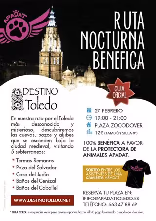 La empresa turística 'Destino Toledo' ha organizado para el próximo sábado 27 de febrero una ruta nocturna cien por cien benéfica a favor de la protectora de animales Apadat, que partirá a las 19.00 horas de la Plaza de Zocodover de la capital regional.