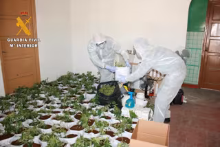 La Guardia Civil descubrió en el registro que las habitaciones del inmueble estaban habilitadas para el cultivo de marihuana, donde, aparte de la droga, han intervenido 18 transformadores eléctricos, 5 extractores de gases, humificadores, ventiladores, termostatos, lámparas halógenas, abono y fertilizantes, varios teléfonos móviles y diversa documentación relacionada con este cultivo.